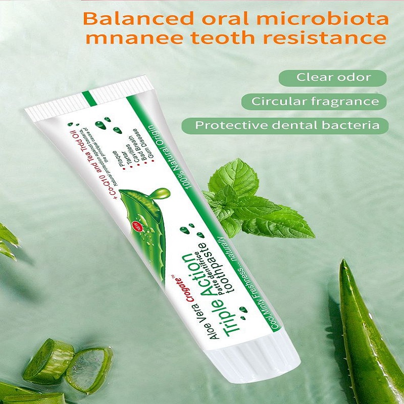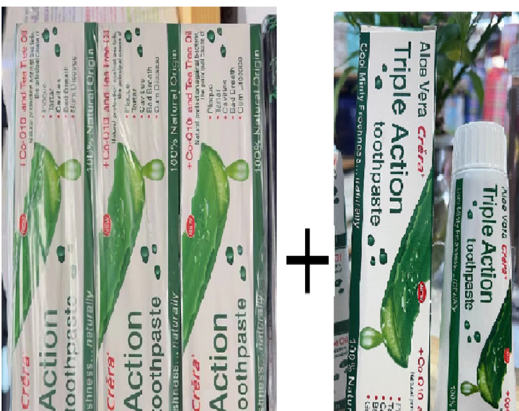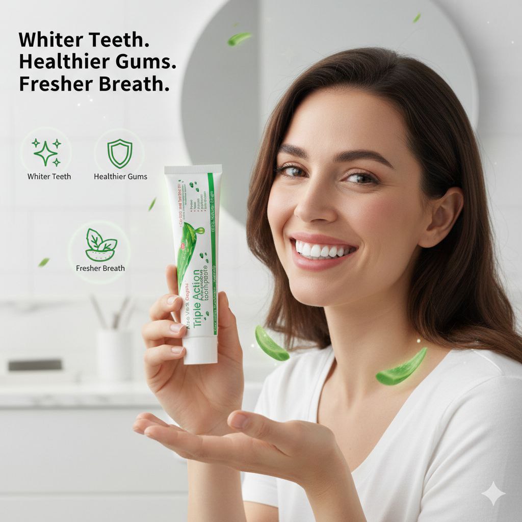 This Aloe Vera Triple Action Toothpaste gives you complete oral care using natural, antibacterial ingredientsβsafe for daily use and gentle on your gums.